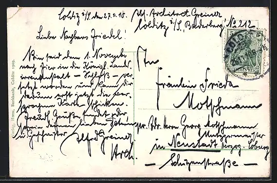alte Ansichtskarte, gelaufen 1910, Eckknick re. oben, Stempelspur, guter Zustand