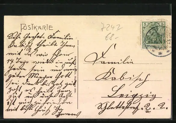 alte Ansichtskarte, gelaufen 1909, guter Zustand