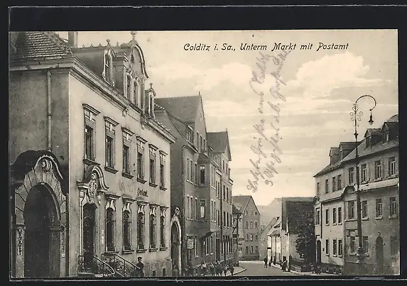 AK Colditz i. Sa., Unterm Markt mit Postamt