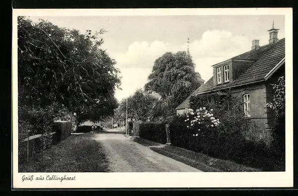 AK Collinghorst, Strassenpartie mit Gebäudeansicht