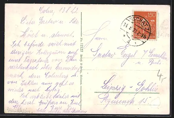 alte Ansichtskarte, gelaufen 1922, Stempelspur, guter Zustand