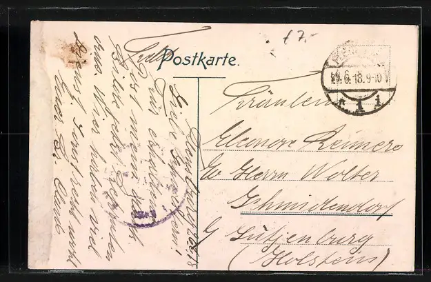 alte Ansichtskarte, gelaufen, Briefmarke entfernt, rückseitig Klebe- und Papierreste, guter Zustand