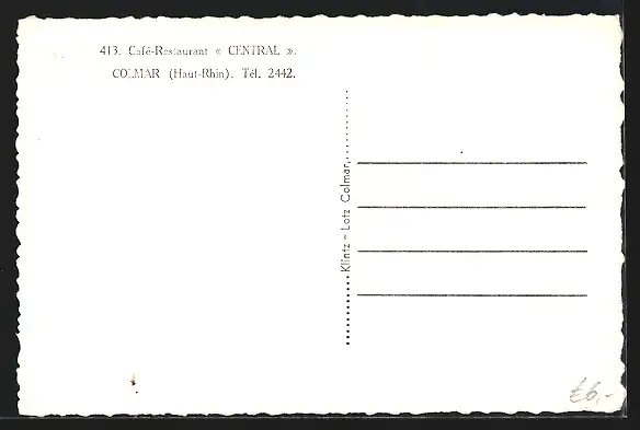 AK Colmar /Haut-Rhin, Café-Restaurant Central