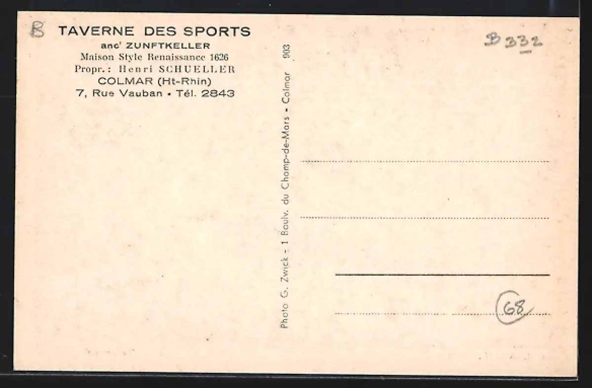 AK Colmar /Ht.-Rhin, Taverne des Sports, 7, Rue Vauban