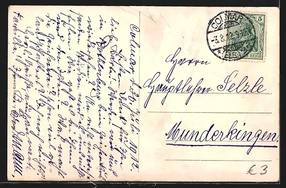 alte Ansichtskarte, gelaufen 1912, Stempelspur, guter Zustand