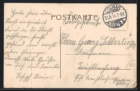 gelaufen 1914, Eckknick li. unten, guter Zustand