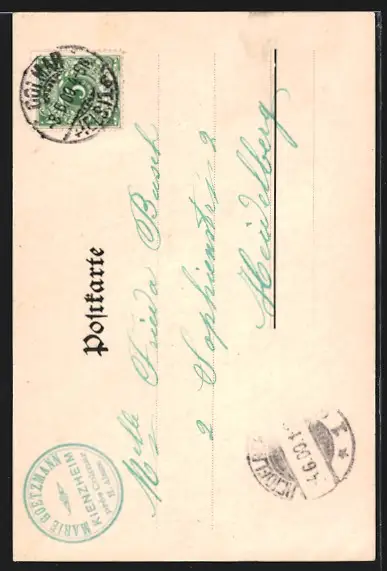 alte Ansichtskarte, gelaufen 1900, guter Zustand