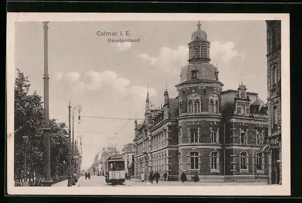AK Colmar i. E., Strassenbahn am Hauptpostamt