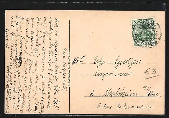 gelaufen 1911, Eckknicke re. unten, guter Zustand