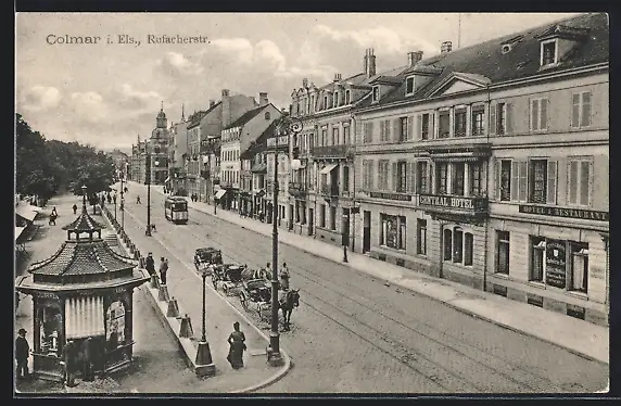 AK Colmar i. Els., Rufacherstr., Strassenbahn