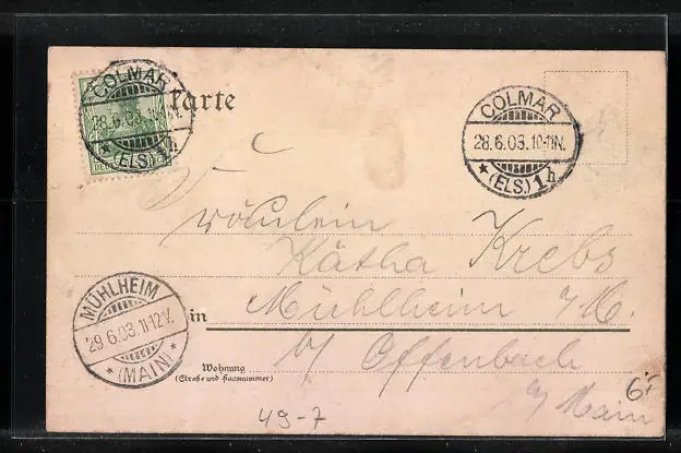 alte Ansichtskarte, gelaufen 1903, Stempelspur, guter Zustand