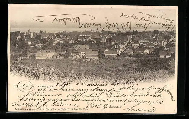 AK Colombier, Ortsansicht mit Wasserblick