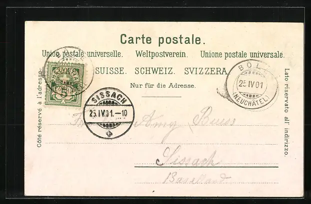 alte Ansichtskarte, gelaufen 1901, guter Zustand