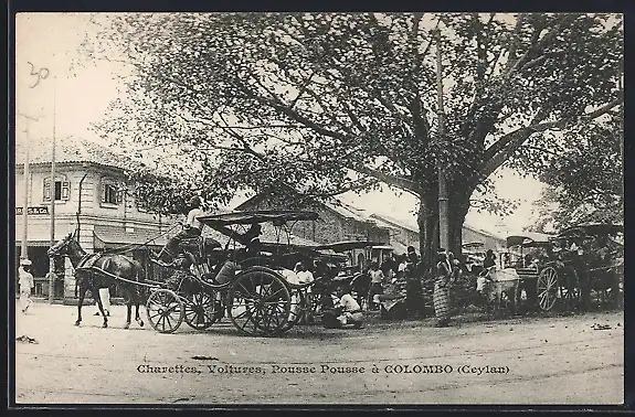 AK Colombo, Charettes, Voitures, Pousse Pousse, Pferdewagen mit Einheimischen
