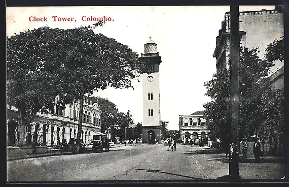 AK Colombo, Clock Tower, Ortspartie mit Uhrturm