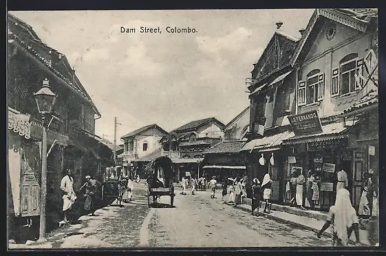 AK Colombo, Dam Street mit J. D. Fernando Geschäft