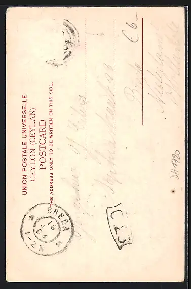 gelaufen 1904, Briefmarke entfernt, rückseitig Oberflächenschaden, Eckknicke li. oben u. re. unten, guter Zustand