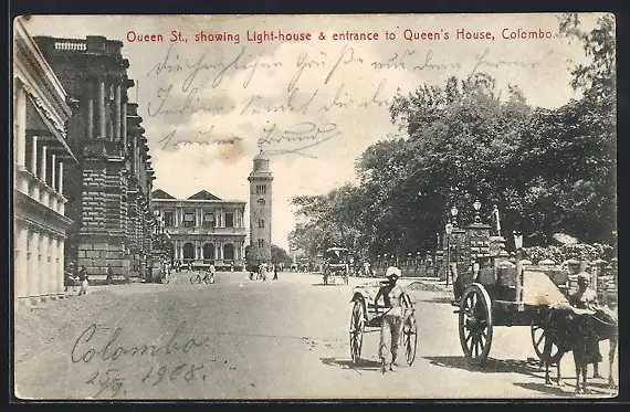 AK Colombo, Queen St. showing Light-house & entrance to Queen`s House