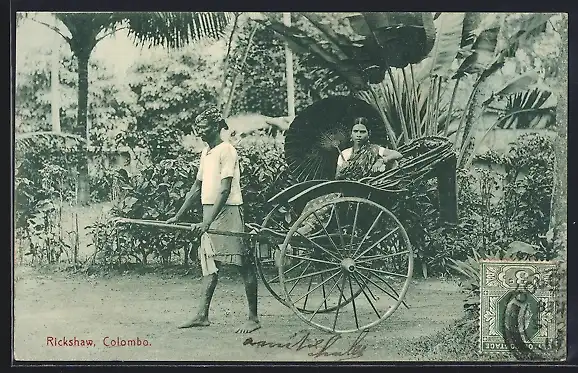 AK Colombo, Rickshaw, Rikscha mit Passagier
