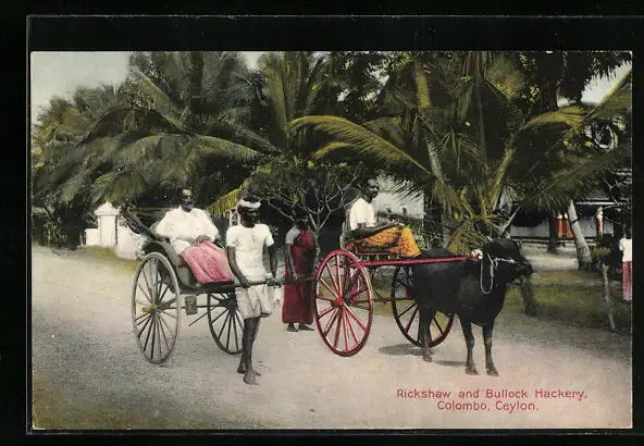 AK Colombo, Rickshaw and Bullock Hackery, Ochsenkarren und Rikscha