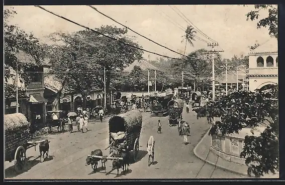 AK Colombo, Strassenpartie mit Ochsenkarren