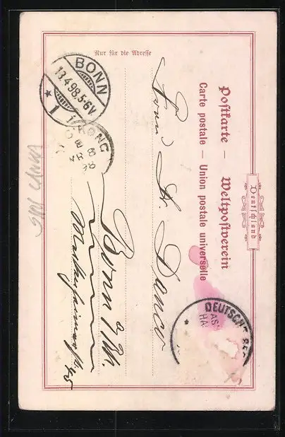 alte Ansichtskarte, gelaufen 1898, Briefmarke entfernt, Eckknick unten links, guter Zustand