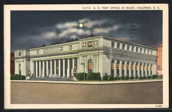 AK Columbia, SC, Post Office at Night