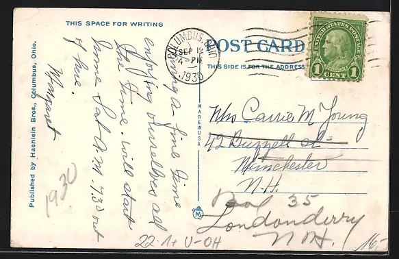 alte Ansichtskarte, gelaufen 1930, Eckknicke oben, guter Zustand