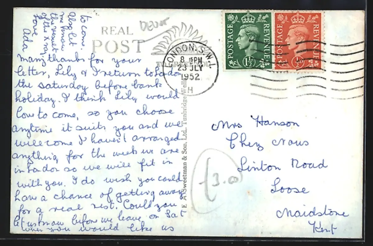 alte Ansichtskarte, gelaufen 1952, guter Zustand