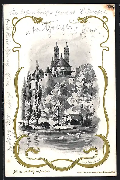 AK Comburg, Blick auf das Schloss vom Teich aus