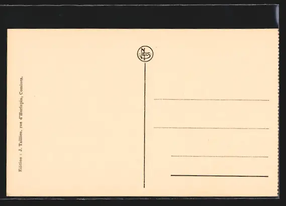 Personenbezogene Daten auf der Rückseite der Karte wurden durch blauen Textmarker unkenntlich gemacht. Die blauen Stellen sind auf die Vorderseite durchgeweicht und wirken sich negativ auf das Postkartenfoto aus