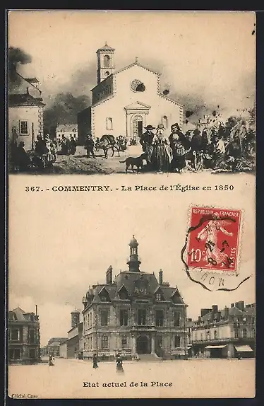 AK Commentry, La Place de l`Eglise en 1850, Etat actuel de la Place