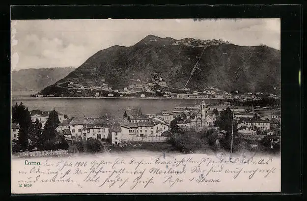 AK Como, Ortsansicht und Seepartie aus der Vogelschau