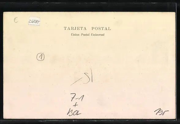 Personenbezogene Daten auf der Rückseite der Karte wurden durch blauen Textmarker unkenntlich gemacht. Die blauen Stellen sind auf die Vorderseite durchgeweicht und wirken sich negativ auf das Postkartenfoto aus