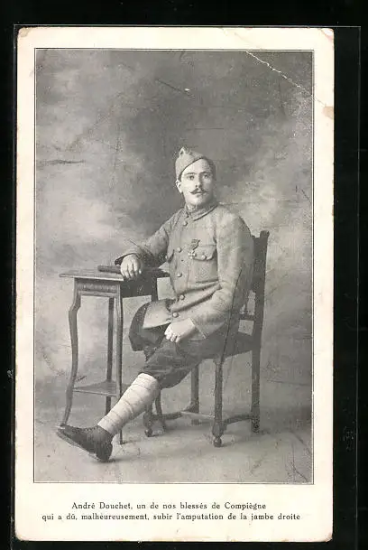 AK Compiègne, Andrè Douchet, Soldat mit amputierten Bein