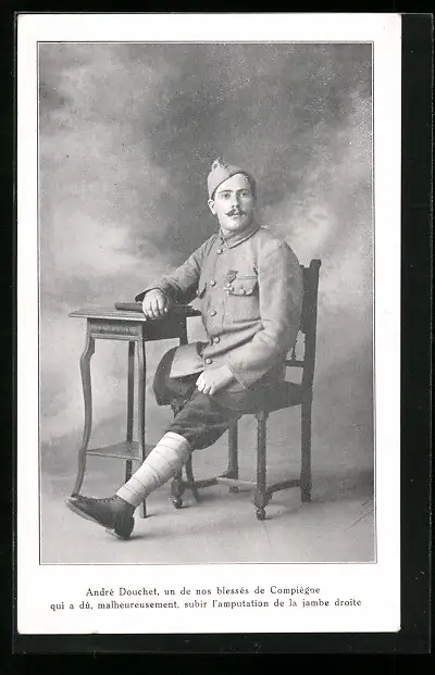 AK Compiègne, Andrè Douchet, Soldat mit amputierten Bein