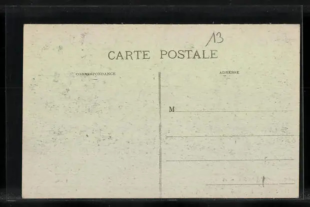 Personenbezogene Daten auf der Rückseite der Karte wurden durch blauen Textmarker unkenntlich gemacht. Die blauen Stellen sind auf die Vorderseite durchgeweicht und wirken sich negativ auf das Postkartenfoto aus