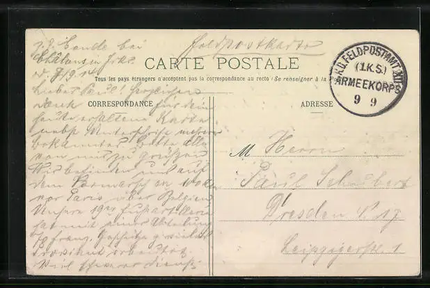 alte Ansichtskarte, gelaufen als Feldpost, guter Zustand