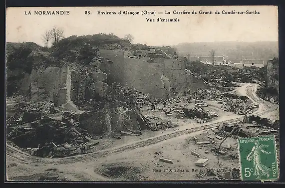 AK Conde-sur-Sarthe, la Carrière de Granit, Vue d`Ensemble
