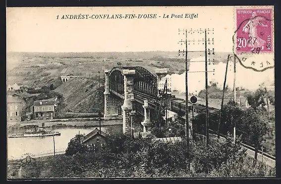 AK Conflans-Fin-d`Oise, Le Pont Eiffel sur la rivière avec vue panoramique environnante