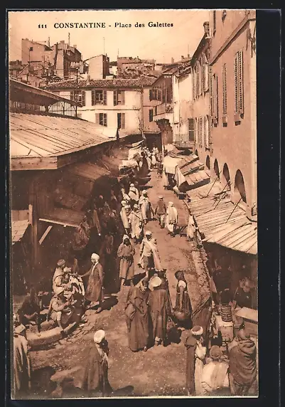 AK Constantine, Place des Galettes, Strassenleben mit Händlern
