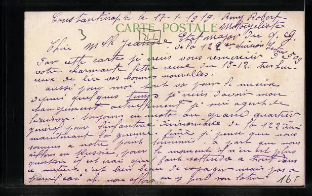 Personenbezogene Daten auf der Rückseite der Karte wurden durch blauen Textmarker unkenntlich gemacht. Die blauen Stellen sind auf die Vorderseite durchgeweicht und wirken sich negativ auf das Postkartenfoto aus