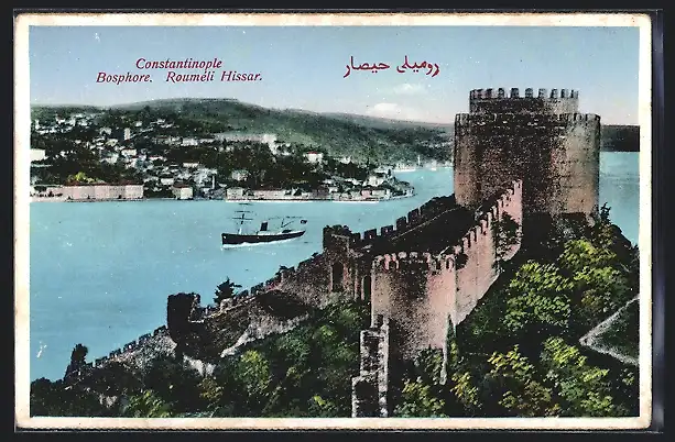 AK Constantinople, Bosphore, Roumeli Hissar, Dampfer