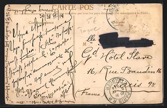 gelaufen 1914, Briefmarke entfernt, Eckknick li. unten, guter Zustand