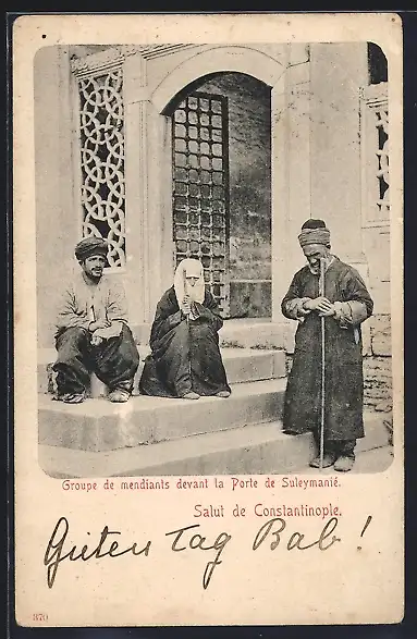 AK Constantinople, Groupe de mendiants devant la Porte de Suleymanié