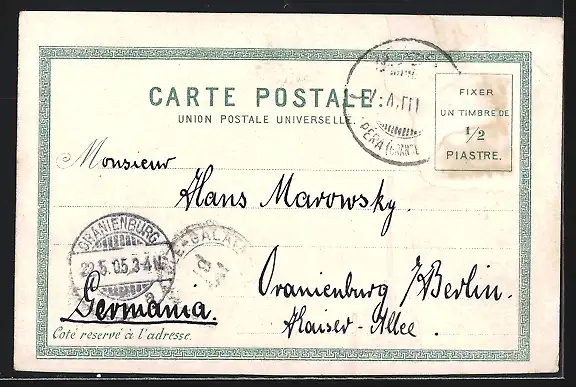 gelaufen 1905, Briefmarke entfernt, rückseitig Klebe- und Papierreste, guter Zustand