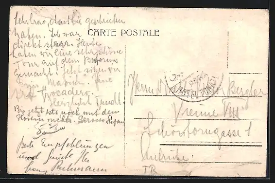 alte Ansichtskarte, gelaufen, Briefmarke entfernt, Bugspur mit kleinem Einriss li. unten, guter Zustand