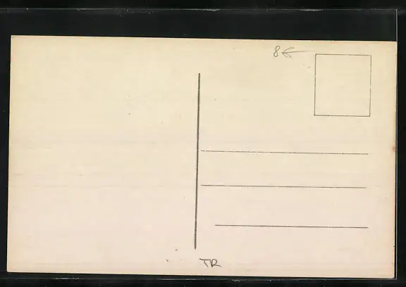 Personenbezogene Daten auf der Rückseite der Karte wurden durch blauen Textmarker unkenntlich gemacht. Die blauen Stellen sind auf die Vorderseite durchgeweicht und wirken sich negativ auf das Postkartenfoto aus
