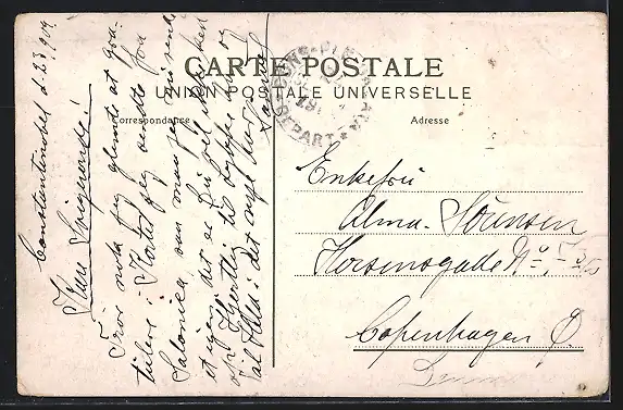 gelaufen 1909, Briefmarke entfernt, Ecken bestoßen, guter Zustand