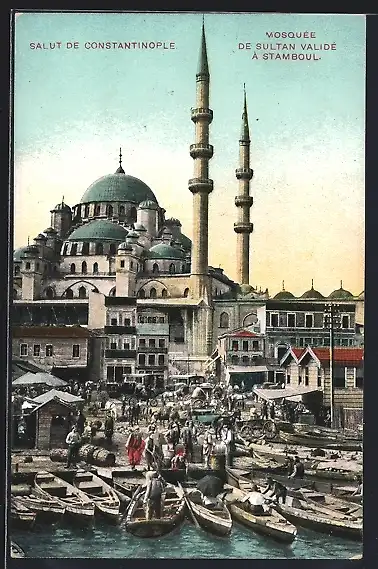 AK Constantinople, Mosquée de Sultan Validé, Stamboul, Boote am Hafen